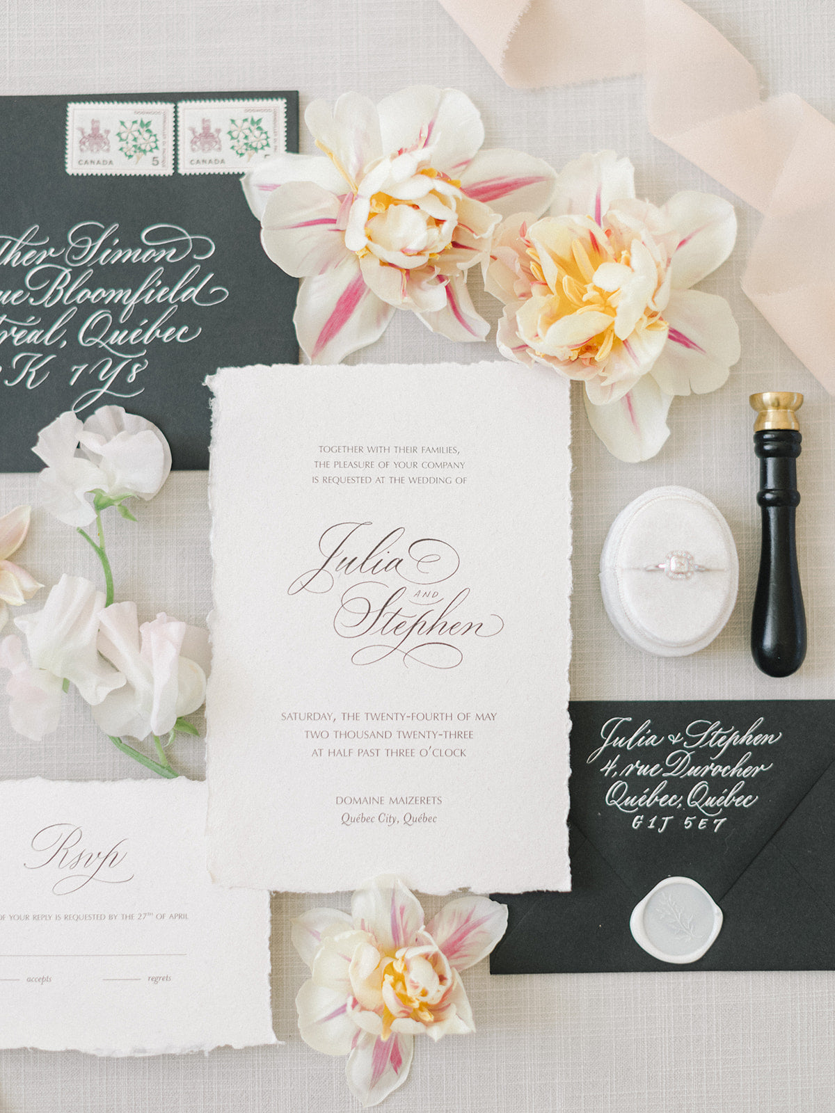 From the romantic floral installations to the intimate champagne moments, every detail of this shoot exudes an artful, editorial flair that speaks to the modern couple's desire for a luxurious yet authentic celebration. Whether you're planning a springtime wedding or simply dreaming of an elegant soirée in Quebec City, let this stunning inspiration guide your vision.